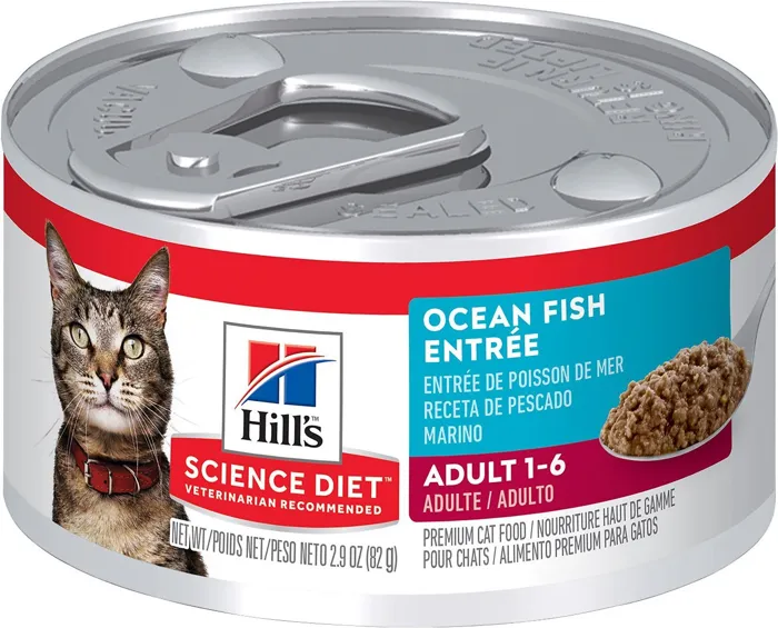 Hill's Science Diet Adult Tender Ocean Fish Dinner Canned Cat Food provides your four-legged friend with great tasting nutrition for a long, happy life. Made with wholesome ingredients such as tender baked ocean fish and chicken, this nourishing recipe is balanced to meet your pet's needs, support healthy digestion and promote an ideal body weight. Manufactured in the United States, every ingredient meets strict requirements for purity and nutrient content which exceed industry standards. Formulated for adult cats from 1 to 6 years of age, this Hill's Science Diet provides your cat the nutrition she needs for a lifetime of health and happiness.