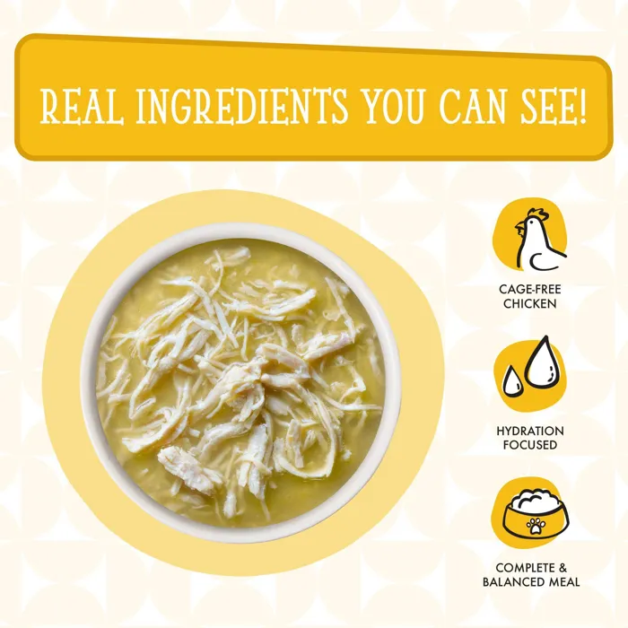 Chicken Broth, Chicken (Boneless, Skinless Breast), Pumpkin, Tapioca Starch, Sunflower Seed Oil, Calcium Lactate, Tricalcium Phosphate, Xanthan Gum, Choline Chloride, Zinc Sulfate, Taurine, Vitamin E Supplement, Ferrous Sulfate, Nicotinic Acid (Vitamin B3), Thiamine Mononitrate (Vitamin B1), Calcium Pantothenate, Vitamin A Supplement, Manganese Sulfate, Vitamin D3 Supplement, Copper Sulfate, Riboflavin Supplement (Vitamin B2), Pyridoxine Hydrochloride (Vitamin B6), Folic Acid, Potassium Iodide, Sodium Selenite, Biotin, Vitamin B12 SupplementGuaranteed Analysis