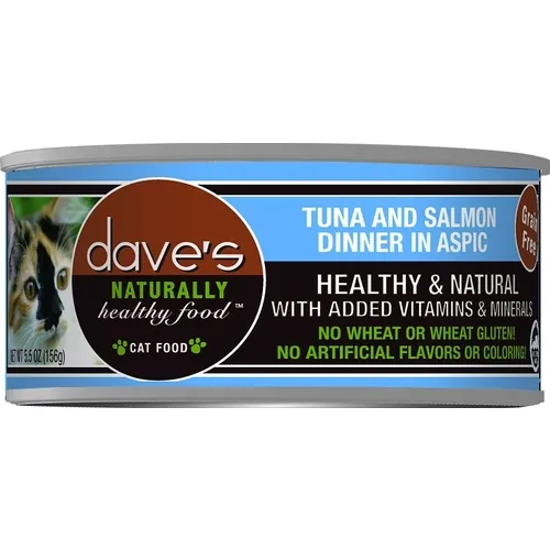 Dave's Naturally Healthy Grain Free Tuna & Salmon Dinner In Aspic Canned Cat Food 5.5-oz