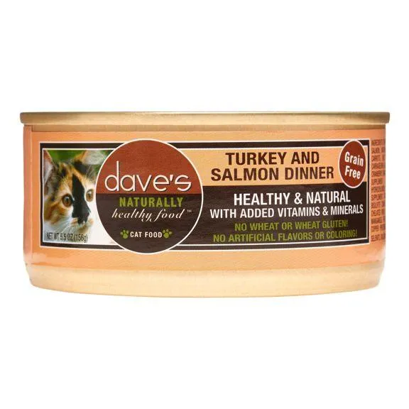Dave'S Naturally Healthy Grain Free Turkey & Salmon Dinner Canned Cat Food 5.5-Oz
