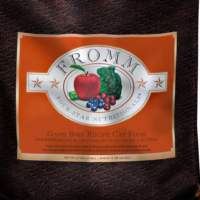 Keeping the needs of your cat in mind, Fromm Four Star Game Bird Dry Cat Food is made to support all breeds and sizes. Made with high quality protein including duck and turkey paired with farm fresh fruits and vegetables, Fromm Four Star Game Bird Dry Cat Food provides well rounded, balanced nutrition for your furry friend without the unnecessary fillers! This recipe also supports the health of your cat's coat and skin with guaranteed levels of Omega fatty acids and is enhanced with probiotics to ensure that their digestion is right on track! Fromm Four Star Game Bird Dry Cat Food is made with quality ingredients found in the United States with no artificial colors, flavors, or preservatives that any cat is sure to love!