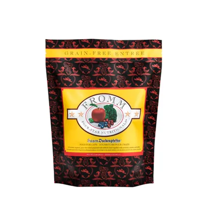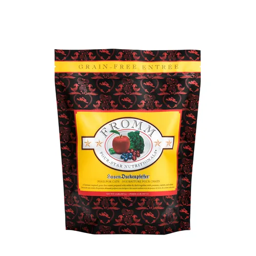Keeping the needs of your cat in mind, Fromm Four Star Game Bird Dry Cat Food is made to support all breeds and sizes. Made with high quality protein including duck and turkey paired with farm fresh fruits and vegetables, Fromm Four Star Game Bird Dry Cat Food provides well rounded, balanced nutrition for your furry friend without the unnecessary fillers! This recipe also supports the health of your cat‰ۡó»s coat and skin with guaranteed levels of Omega fatty acids and is enhanced with probiotics to ensure that their digestion is right on track! Fromm Four Star Game Bird Dry Cat Food is made with quality ingredients found in the United States with no artificial colors, flavors, or preservatives that any cat is sure to love!