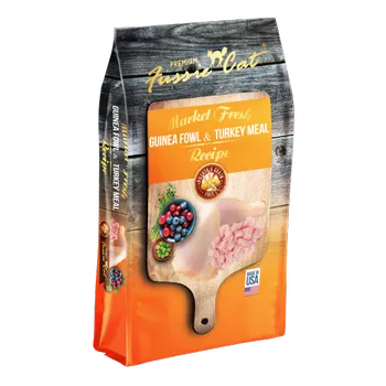 Fussie Cat's Guinea Fowl & Turkey Recipe is crafted with real, recognizable ingredients you can feel good about. Cats are notoriously fussy when it comes to their food and require a diet based on animal proteins to truly thrive. That's why Fussie Cat tailors the taste of each recipe based on actual feline feedback to ensure it's equally delicious. This gluten-free recipe features real guinea fowl first followed by other wholesome ingredients like turkey meal, peas, turkey, cranberries and blueberries, so your cat can get the protein and antioxidant fruits and vegetables she needs.