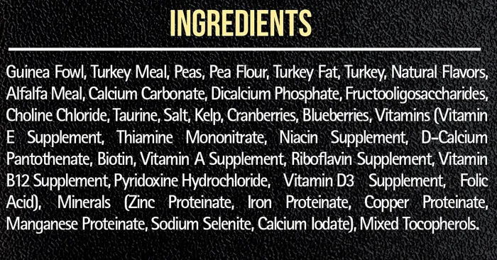 - Crafted with guinea fowl as the very first ingredient for the high-quality protein your cat needs to fuel her day.
