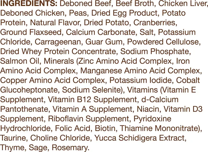 - Grain-free recipe features protein-rich beef and chicken for the nutrients to support healthy muscles and energy.