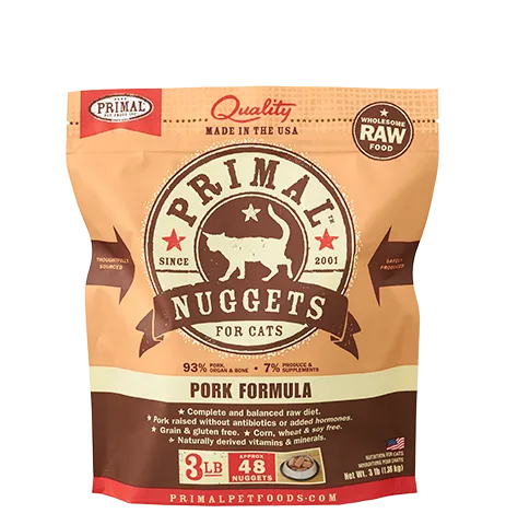 Raw Frozen Feline Pork Formula Nuggets Cat Food 3-Lb
