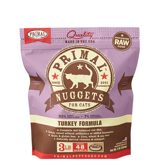 Raw Frozen Feline Turkey Formula Nuggets Cat Food 3-Lb