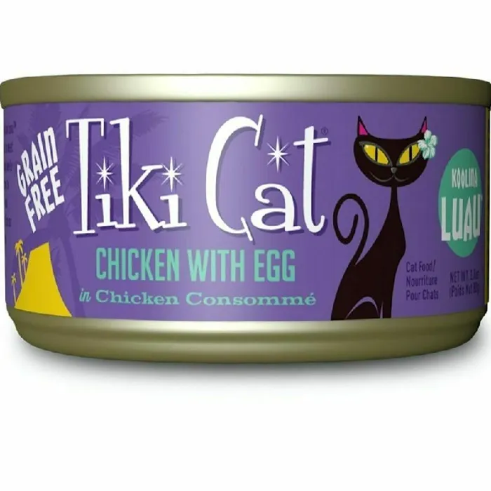 Tiki Cat Gourmet Whole Food Brand Cat Food Koolina Luau is shredded chicken breast and egg prepared in consommรญยฉ for a grain free, gravy free, zero carb meal.