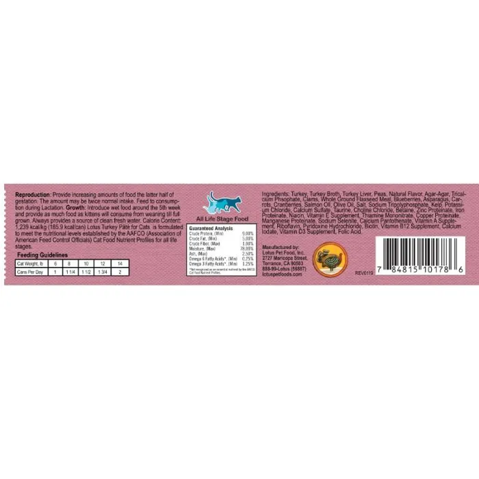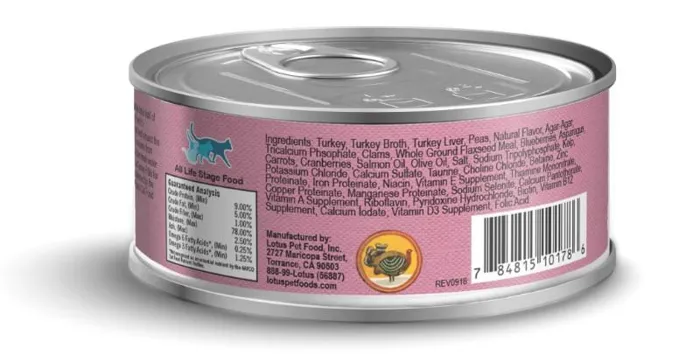 Lotus Turkey Canned Cat Food combinesรฅรturkey and turkey liver broth to craft a thoughtfully-formulated food specially made for cats of all life stages.