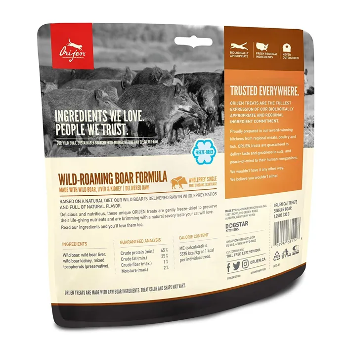 Freeze-Dried Cat Treats, Wild-Roaming Boar, Biologically Appropriate & Grain Free 1.25-Oz