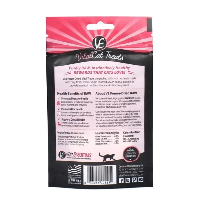 Freeze Dried Grain Free Chicken Hearts Limited Ingredient Cat Treats 0.8-Oz