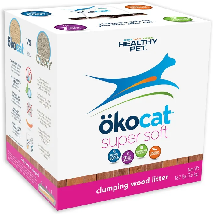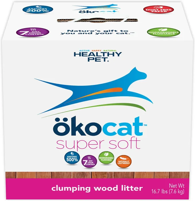 Cats can now go au natural with their cat litter. Okocat Super Soft Clumping Wood Cat Litter is made of 100% reclaimed fibers that are free from chemicals, dyes, and other synthetics for a naturally healthier environment. The Super Soft formula contains extra lightweight, fine wood granules that are soft on catsโ paws like traditional clay litters for an easier transition when switching to natural. Ideal for declawed cats, seniors, and kittens with sensitive paws, this high performance litter has been lab-tested and proven to absorb more than five times its weight in liquid and control odor for seven days.