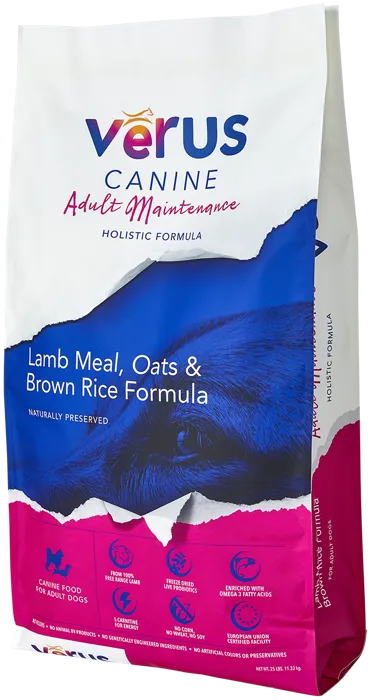 Verus Adult Maintenance Lamb Meal, Oats & Brown Rice Holistic Formula provides complete and balanced nutrition for the life of your dog.