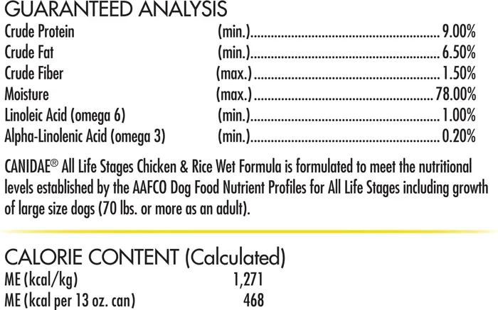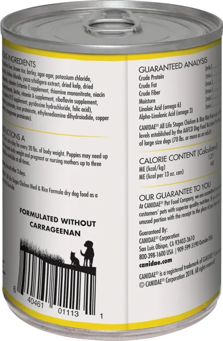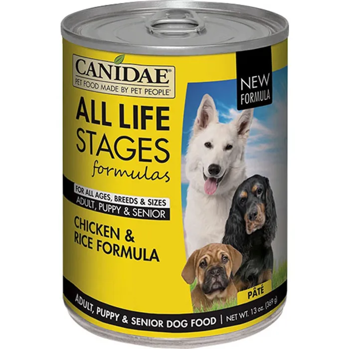 Make mealtimes easy, tasty and nutritious with the CANIDAE Life Stages Chicken & Rice Formula Canned Dog Food. Vet formulated for all dogs, this premium formula takes a one-recipe-serves-all approach to feeding. It's perfect for multi-dog homes to eliminate the need for multiple cans of different foods, as well as single-dog homes who keep switching based on age, breed and size. Plus, it's slow cooked in broth using only the most premium ingredients, offering an irresistible flavor that pets will love.