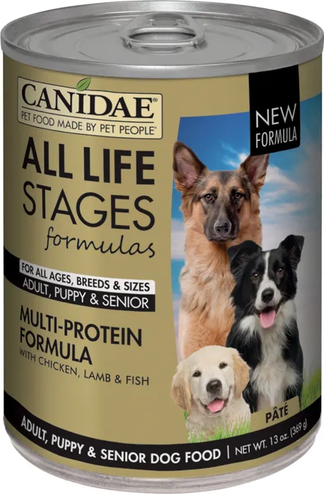 Make mealtimes easy, tasty and nutritious with the CANIDAE All Life Stages Formula Canned Dog Food. Formulated for all dogs, this premium formula takes a one-recipe-serves-all approach to feeding. It's perfect for multi-dog homes to eliminate the need for multiple cans of different foods, as well as single-dog homes who keep switching based on age, breed and size. Plus, it's slow cooked in broth using only the most premium ingredients, offering an irresistible flavor that pets will love.