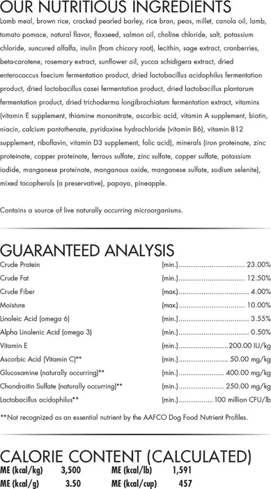 - Optimum protein from lamb meal for a nutritionally dense formula.