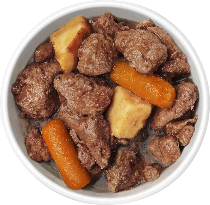 Grammy is no longer single. Merrick added Pappy's Pot Roast to your cupboard to make the perfect couple of Merrick recipes your dogs will devour. Made with big chunks of beef and hand-stuffed red jacket new potatoes and carrots in gravy, this new Chunky flavor will make any mealtime special. Delicious, home style chunks that your dog will love.