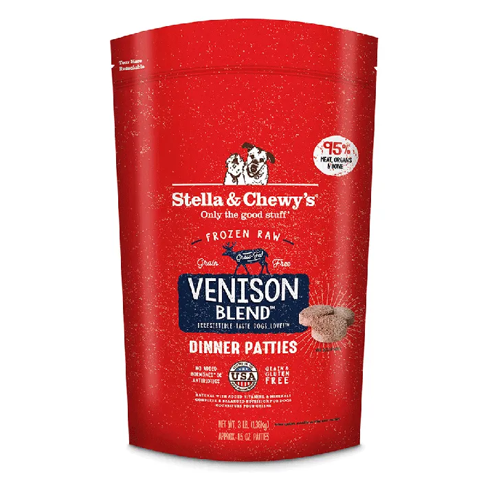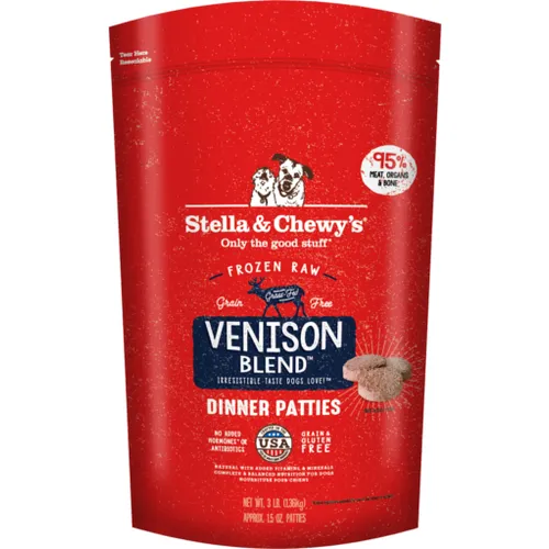 Your dog will certainly be fawning over Venison Blend Frozen Raw Dog Food by Stella and Chewy's! This premium frozen food is formulated to meet the nutritional levels created by the AAFCO Dog Food Nutrient Profiles for all ages and sized breeds. It's a delicious and nourishing dinner with high-quality venison protein to give your dog a true taste of the wild.