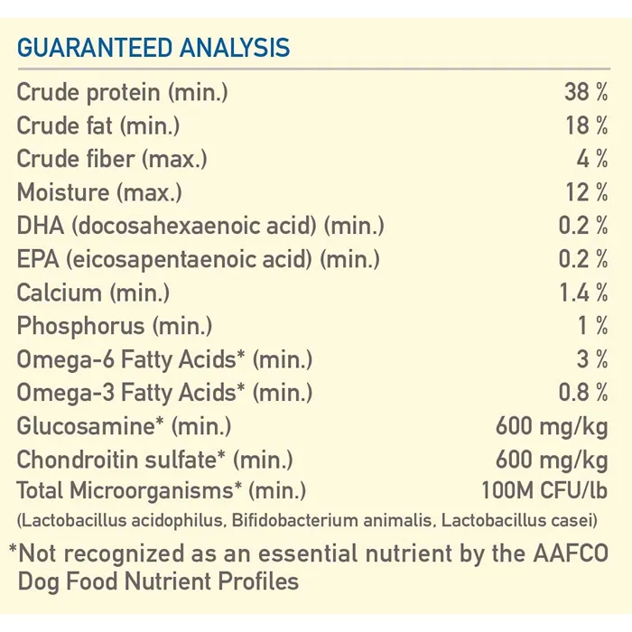 - Nourishes dogs according to their biological needs with 38% protein and 20% carbohydrates