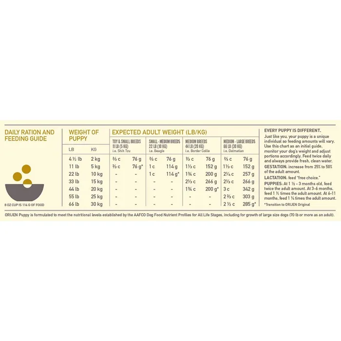 - Puppy food provides a meat-packed, protein-rich diet to help support growth and development