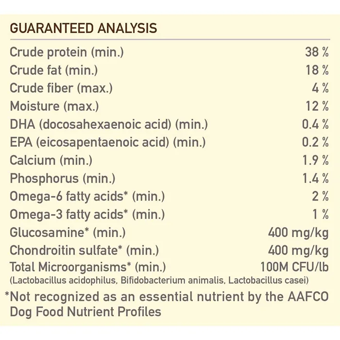 - Dry dog food nourishes dogs according to their biological needs with 38% protein and 20% carbohydrates