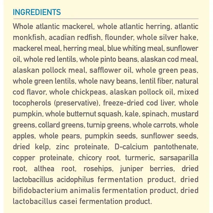 - Six Fish dog food made with an unmatched diversity of fresh, whole, wild-caught fish from New England's Atlantic waters