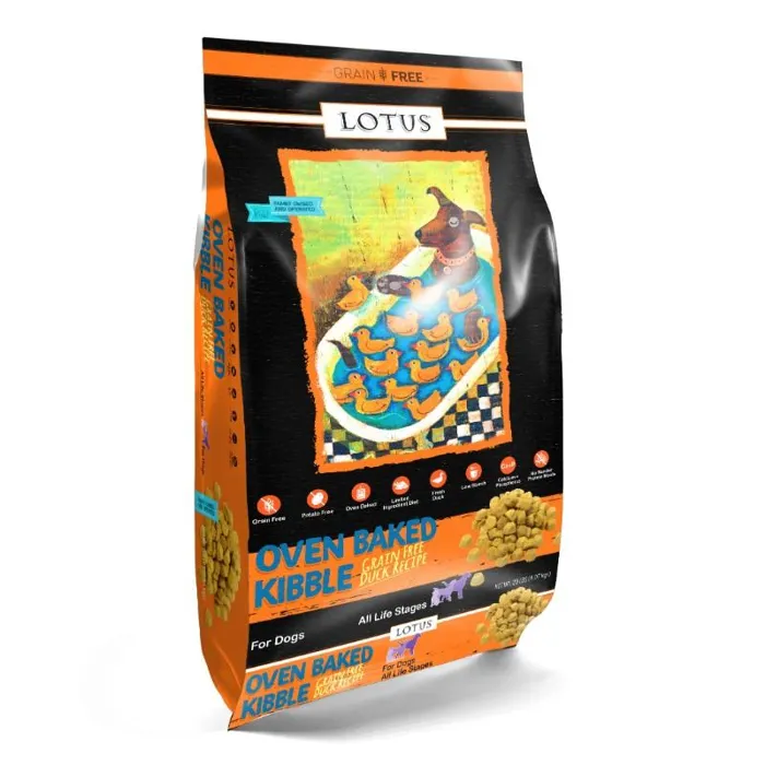 - Dogs love Lotus' oven-baked great taste because we use more fresh meat (up to 40% fresh meat compared to 20% or less in extruded foods)
