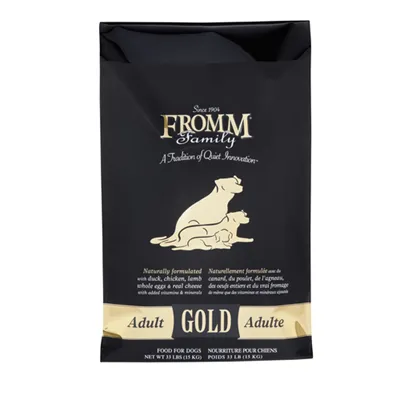 Keeping the needs of your adult dog in mind, Fromm Gold Adult Dry Dog Food is made to support all breeds and sizes. Made with high quality protein like chicken and duck and paired with fresh produce including potatoes and carrots, Fromm Gold Adult Dry Dog Food provides well rounded, balanced nutrition for your furry friend without the unnecessary fillers! This recipe also supports the health of your dog's coat and skin with guaranteed levels of Omega fatty acids and is enhanced with probiotics to ensure that their digestion is right on track! Fromm Gold Adult Dry Dog Food is made with quality ingredients found in the United States with no artificial colors, flavors, or preservatives that any pup is sure to love!