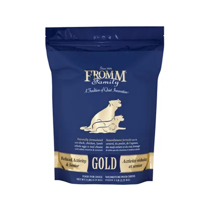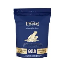 Fromm Gold Senior Dry Dog Food is perfect for your less active adult, your senior, or your dog that needs some weight management help. Made with high quality protein like chicken and lamb paired with fresh produce including potatoes and whole eggs, Fromm Gold Senior Dry Dog Food provides well rounded, balanced nutrition for your furry friend without the unnecessary fillers! This recipe also supports the health of your dog's coat and skin with guaranteed levels of Omega fatty acids and is enhanced with probiotics to ensure that their digestion is right on track! Fromm Gold Senior Dry Dog Food is made with quality ingredients found in the United States with no artificial colors, flavors, or preservatives that any pup is sure to love!