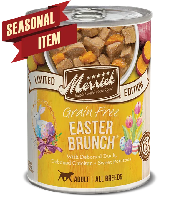 Merrick Grain Free Easter Brunch Seasonal Recipe Dog Food is formulated to meet the nutritional levels established by the AAFCO Dog Food Nutrient Profiles for maintenance.