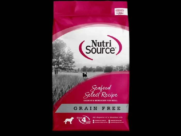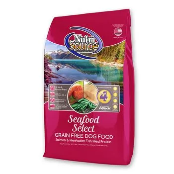 NutriSource Grain Free Seafood Select with Salmon Dry Dog Food utilizes a holistic, easy to digest recipe for ideal health maintenance in all breeds and life stages. This grain free recipe is made with fresh, animal protein from the USA along with other high quality ingredients providing perfectly balanced nutrition your pup is sure to love! Nutrisource recipes always include their Good 4 Life system with ingredients that work together to promote gut health often showing health improvements within the first feeding!