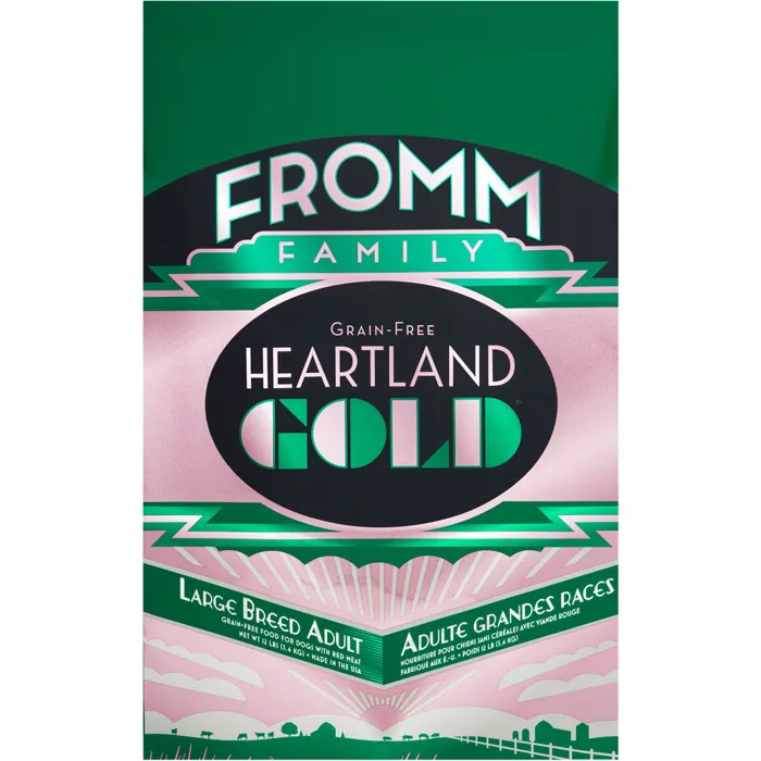 Keeping the needs of your growing, large breed puppy in mind, Fromm Heartland Gold Grain Free Large Breed Puppy Dry Dog Food is made to support the needs of those expecting to weigh more than 50 pounds full grown. Made with high quality protein including beef, lamb, and pork paired with fresh produce including potatoes and peas, Fromm Heartland Gold Grain Free Large Breed Puppy Dry Dog Food provides well rounded, balanced nutrition for your furry friend without the unnecessary fillers! This recipe also supports the health of your dog's coat and skin with guaranteed levels of Omega fatty acids and is enhanced with probiotics to ensure that their digestion is right on track! Fromm Heartland Gold Grain Free Large Breed Puppy Dry Dog Food is grain free and made with quality ingredients found in the United States with no artificial colors, flavors, or preservatives that any pup is sure to love!