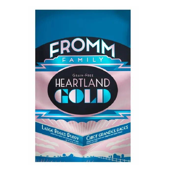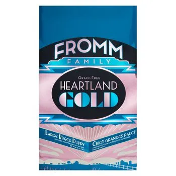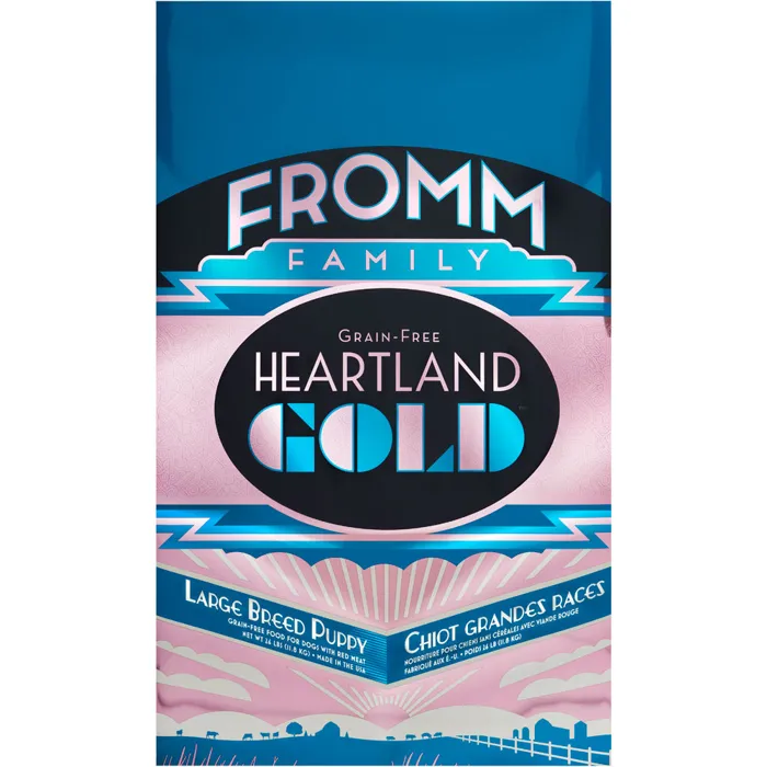 Keeping the needs of your growing, large breed puppy in mind, Fromm Heartland Gold Grain Free Large Breed Puppy Dry Dog Food is made to support the needs of those expecting to weigh more than 50 pounds full grown. Made with high quality protein including beef, lamb, and pork paired with fresh produce including potatoes and peas, Fromm Heartland Gold Grain Free Large Breed Puppy Dry Dog Food provides well rounded, balanced nutrition for your furry friend without the unnecessary fillers! This recipe also supports the health of your dog's coat and skin with guaranteed levels of Omega fatty acids and is enhanced with probiotics to ensure that their digestion is right on track! Fromm Heartland Gold Grain Free Large Breed Puppy Dry Dog Food is grain free and made with quality ingredients found in the United States with no artificial colors, flavors, or preservatives that any pup is sure to love!
