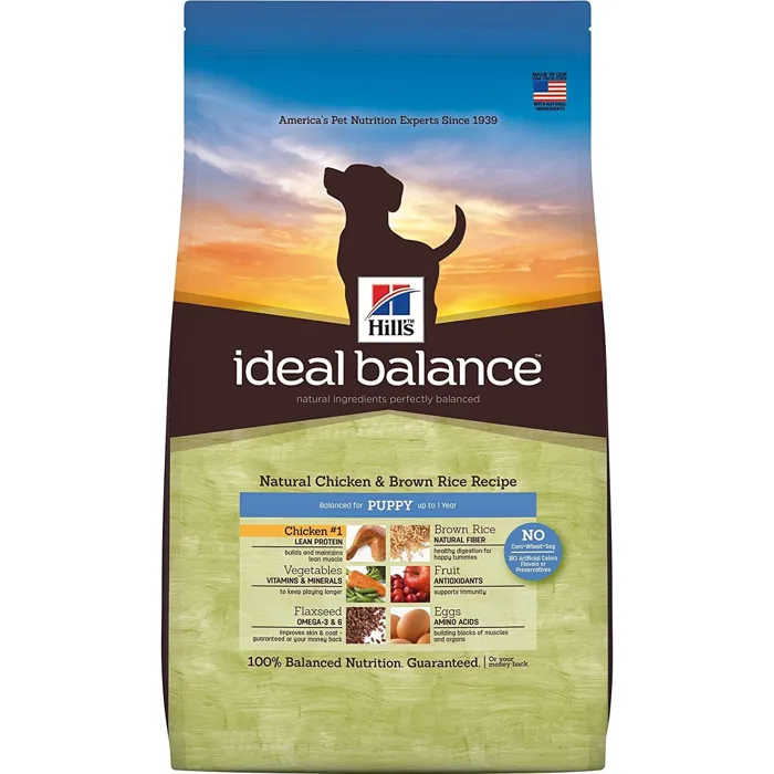 Hill's Ideal Balance Natural Chicken & Brown Rice Recipe Puppy provides natural ingredients perfectly balanced for growing puppies.