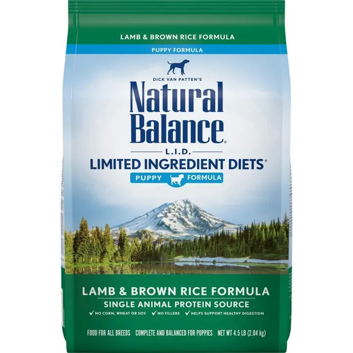 Natural Balance L.I.D. Limited Ingredient Diets Lamb & Brown Rice Formula Dry Dog Food offers your puppy quality dog food with a limited number of protein and carbohydrate sources while maintaining complete and balanced nutrition.