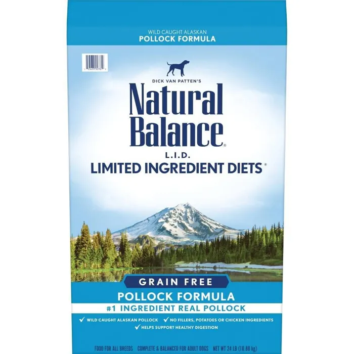 Feed your dog Natural Balance L.I.D. Limited ingredient diets protein dog food. Free from grains, potatoes, filler and chicken ingredients, this true L.I.D. Features one Animal protein source and two Primary carbohydrate sources, helping you avoid ingredients commonly associated with food sensitivities. This dog food is formulated with 32% protein โฐรร the highest CRUDE protein level among leading limited ingredient dog food brands โฐรร and features premium wild caught Alaskan pollock as the #1 ingredient.