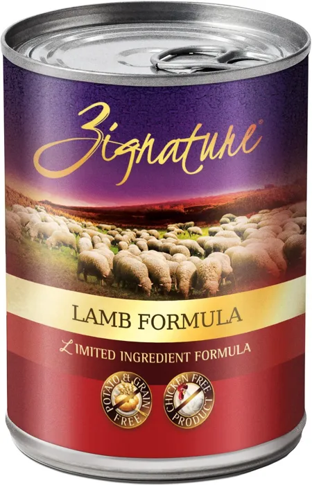 Fill your best friend's bowl with wholesome nutrition when you feed them Zignature Lamb Limited Ingredient Formula Grain-Free Canned Dog Food. Your pup will enjoy a delicious dinner made with real, farm-raised lamb from New Zealand, wholesome peas, chickpeas, and carrots. This meat-first recipe offers pups the protein they need to thrive, while Zignature's limited ingredient recipe throws out troublesome ingredients like chicken, corn, wheat, soy, and potatoes, creating peak hypoallergenic, low-glycemic nutrition. Combine that with key antioxidants, essential fatty acids, and a complete spectrum of vitamins and minerals for a well-rounded meal that goes beyond nature to become your pet's signature food for life.