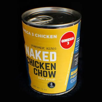 The only ingredients you will find are organic chicken, organic brown rice, omega 3 chicken, pumpkin juices and water Yep! Thatโs it. No gluten, no additives, binders or coloring. Naked Chicken Chow has no antibiotics, no fillers, no guar gum, and no carrageenan. It is simply NAKED.