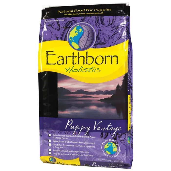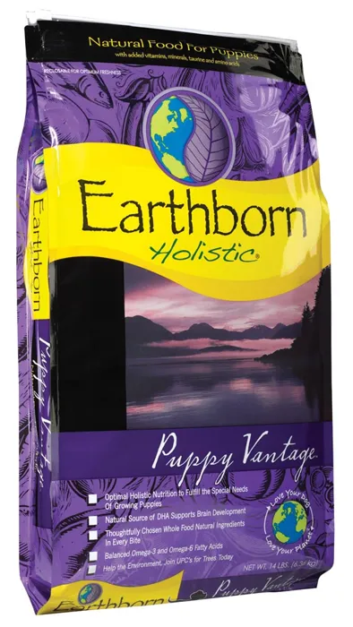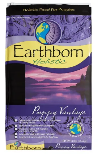 Earthborn Holistic Vantage Puppy Formula Dry Dog Food offers optimal holistic nutrition, which fulfills the special needs of growing puppies. Earthborn Holistic Vantage Puppy Formula Dry Dog Food contains DHA, a type of long-chain Omega-3 fatty acid that is present in concentrations in brain and retinal tissue and aids in healthy brain and eye development and function in puppies.
