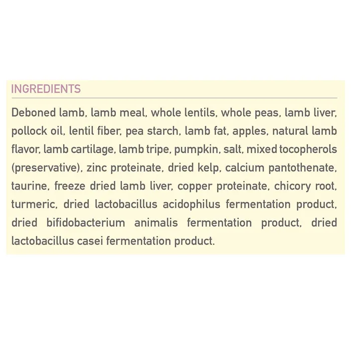 - Limited-ingredient dog food is packed with 60% fresh, grass-fed lamb