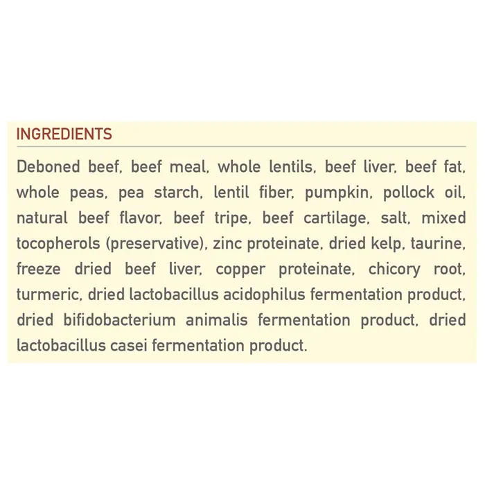 - Limited-ingredient dog food is packed with 60% fresh, ranch-raised beef