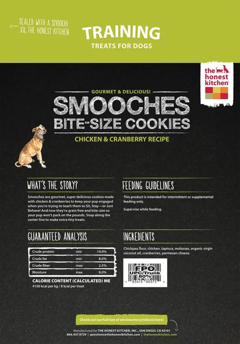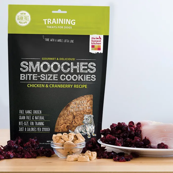 Your pup will want to kiss you for rewarding him with The Honest Kitchen Smooches Grain-Free Chicken & Cranberry Recipe Cookie Dog Treats. A gourmet, super-delicious cookie made from free-range chicken and nutrient-rich cranberries, the bite-sized yumminess is perfect for training. So whether you're teaching him to sit, stay, or shake hands, he'll be begging for just one more taste! The grain-free recipe is great for all breeds and sizes, and at just eight calories a pop, you don't have to worry about him packing on the pounds.