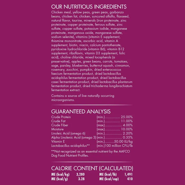 - Features a single-animal, quality protein from chicken.