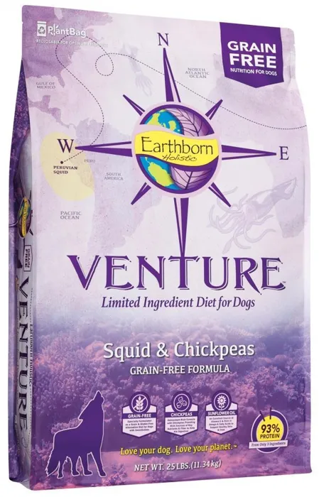 We traveled to the coastal Pacific waters of Peru & Chile to find exotic Giant Squid for our Earthborn Holistic Venture Squid & Chickpeas formula. Giant Squid provide a high level of digestible and balanced protein for dogs and are wild-caught by established fishing communities in South America. Also sold in restaurants as calamari, Giant Squid from South America makes this unique limited ingredient, grain-free diet a true delicacy for your dog. Added chickpeas from North America provide rich sources of key nutrients & fiber to help aid digestion.