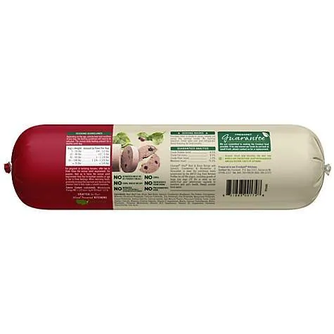 This high protein, grain free roll is gently cooked with 100% natural beef and bison with antioxidant-rich spinach, blueberries and cranberries. Verified Non GMO.