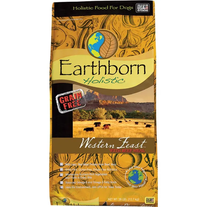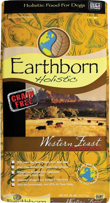 Give your canine a kibble that's both nutritious and delicious with Earthborn Holistic's Western Feast. It's crafted with wholesome fruits and vegetables to support your pal's immunity, plus protein from beef meal and pork meal to fuel his muscles. This dry dog food is completely free of grains, gluten and potatoes, which means it's especially perfect for dogs with food sensitivities. You can feel good feeding your furry friend a bowl of this Western Feast knowing that it packs the essential nutrients your pal needs with vitamins and minerals and has the flavor he instinctively craves.