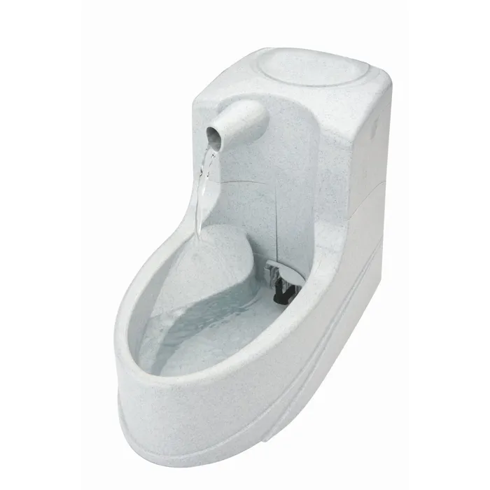 Keep fresh, filtered water flowing to your small dog or cat 24/7 with the PetSafeยฎ Drinkwellยฎ Mini Pet Fountain. The free-falling stream of fresh water entices cats and dogs to drink more water, which helps prevent urinary tract infections and kidney disease. The fountain holds 40 ounces of water and includes a replaceable carbon filter that removes bad tastes and odors. The pump is adjustable, which allows you to customize water flow. Itโs also submersible for quiet operation and has a receiving ramp to reduce splashing. The narrow, compact design and shallow bowl work in most any space. You can easily take the fountain apart for easy cleaning and all parts except the pump are top-shelf dishwasher safe. PetSafeยฎ brand is here to help you and your pet live happy togetherโข.
