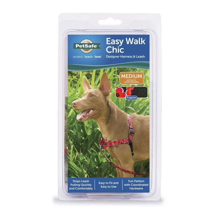 Add a little fun to your walks with the Easy Walkยฎ Chic No-Pull Harness! The Easy Walkยฎ Chic Harness gently discourages your dog from pulling on the leash with a front-chest leash attachment that helps steer your dog to the side and redirect his attention toward you. Constructed with fun and vibrant sublimated patterns, itโs easy to fit and comfortable to wear. The Easy Walkยฎ Chic Harness is sure to make walking more fun and enjoyable for you and your dog.