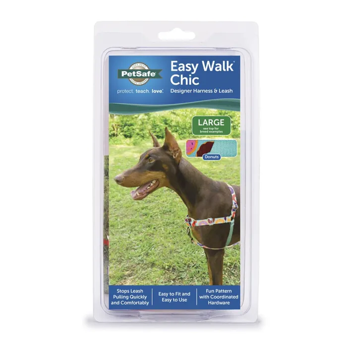 Add a little fun to your walks with the Easy Walkยฎ Chic No-Pull Harness! The Easy Walkยฎ Chic Harness gently discourages your dog from pulling on the leash with a front-chest leash attachment that helps steer your dog to the side and redirect his attention toward you. Constructed with fun and vibrant sublimated patterns, itโs easy to fit and comfortable to wear. The Easy Walkยฎ Chic Harness is sure to make walking more fun and enjoyable for you and your dog.