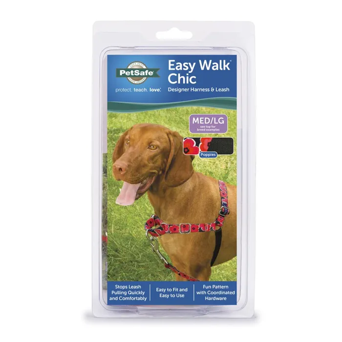Add a little fun to your walks with the Easy Walkยฎ Chic No-Pull Harness! The Easy Walkยฎ Chic Harness gently discourages your dog from pulling on the leash with a front-chest leash attachment that helps steer your dog to the side and redirect his attention toward you. Constructed with fun and vibrant sublimated patterns, itโs easy to fit and comfortable to wear. The Easy Walkยฎ Chic Harness is sure to make walking more fun and enjoyable for you and your dog.